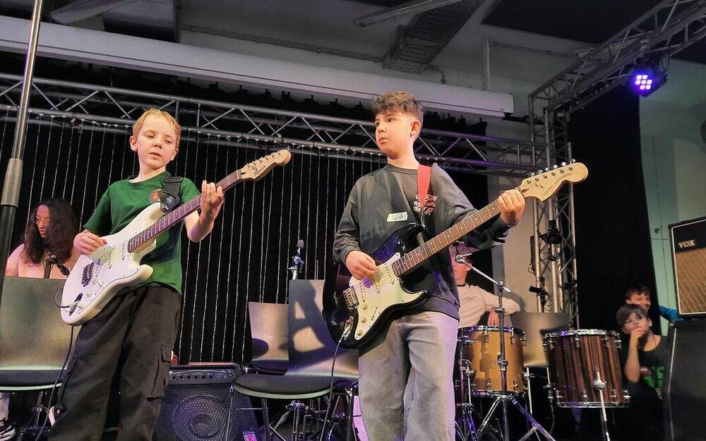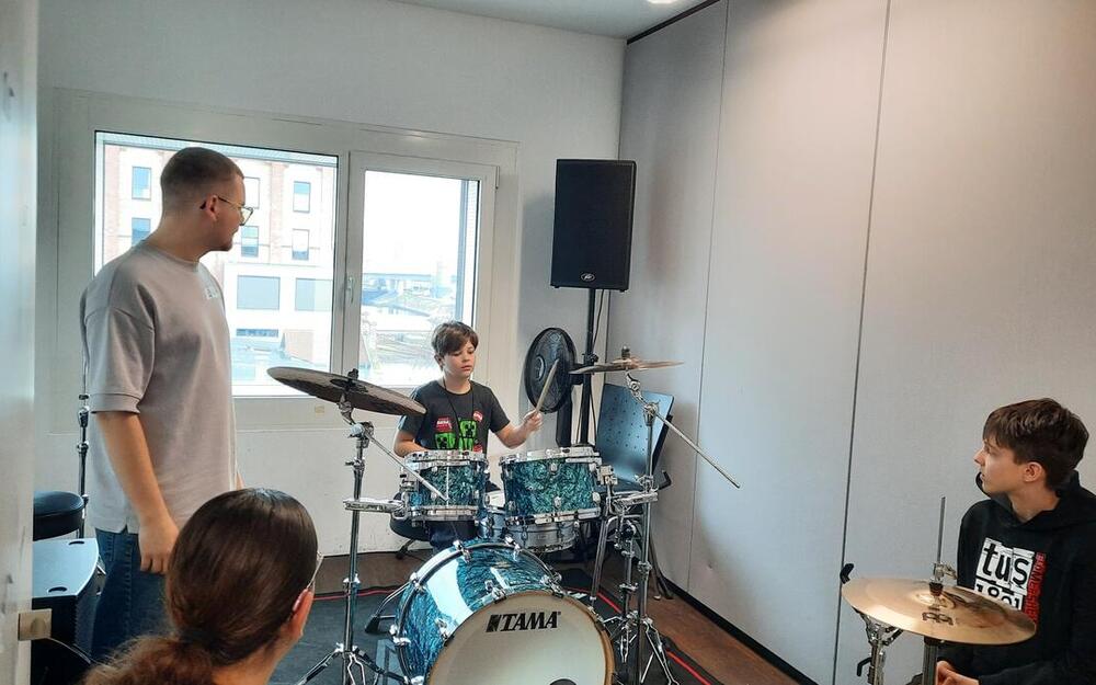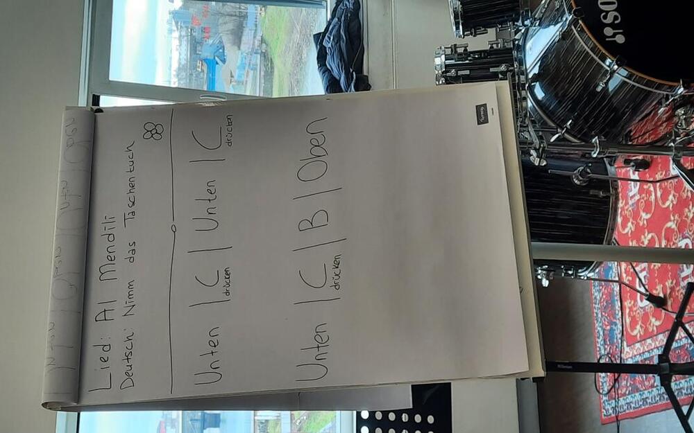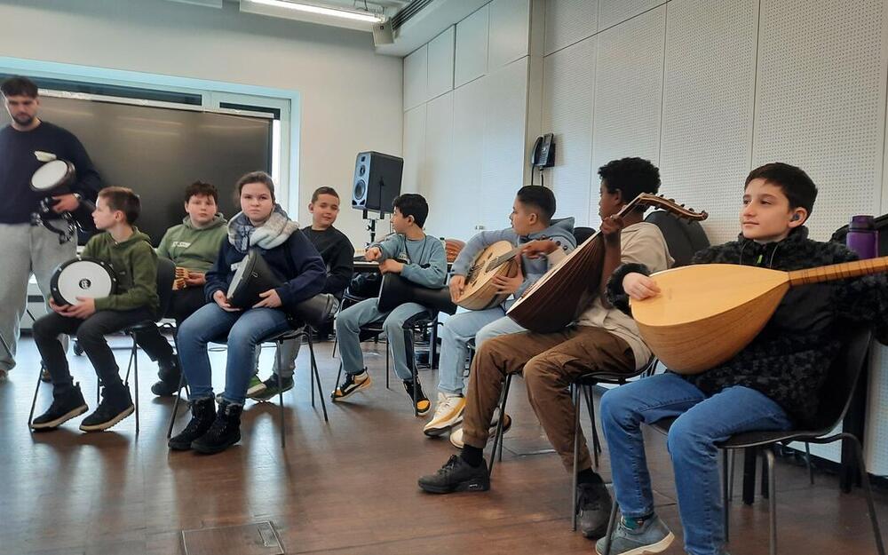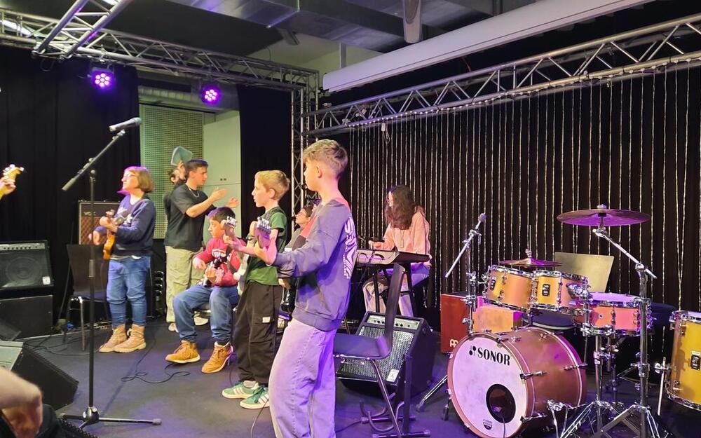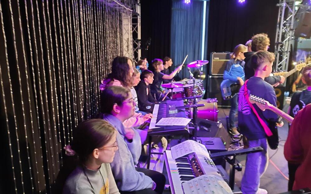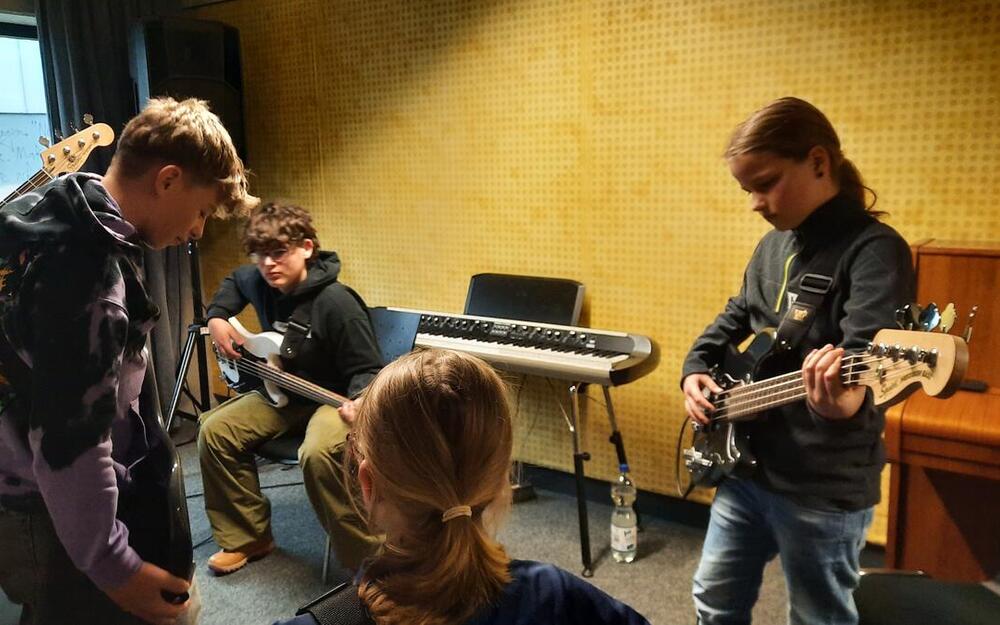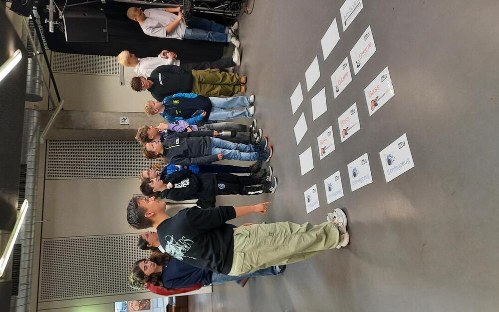 Nach einem energiegeladenen Bodypercussion-Workshop konnten sich die Schülerinnen und Schüler je nach Interesse unterschiedlichen Angeboten zuordnen.Im Bereich Weltmusik lernten sie, mit Baglama und Djembe zu spielen, während im Bandangebot die Wahl zwischen Schlagzeug, Gitarre, Bass, Keyboard und Gesang bestand.