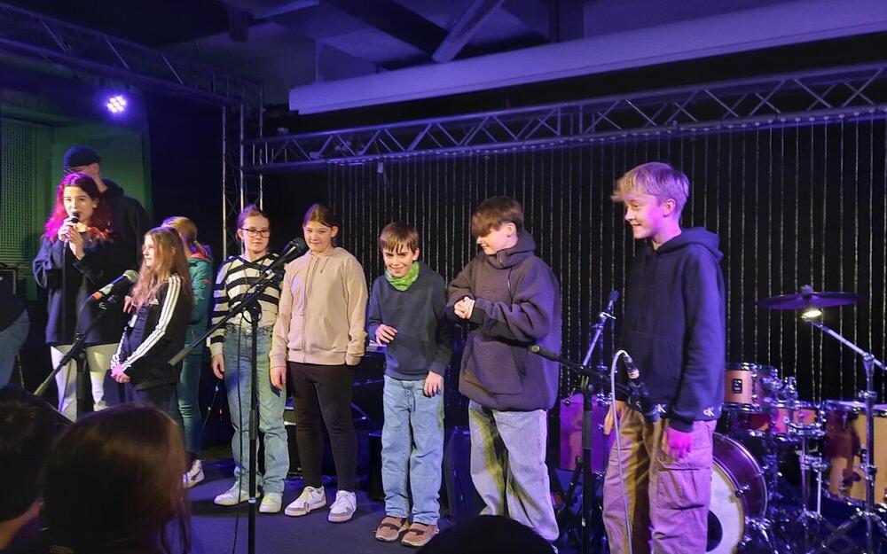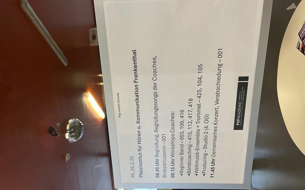 Den krönenden Abschluss bildete ein kleines Abschlusskonzert: Die Schülerinnen und Schüler wurden selbst auf die Bühne geholt, um ihr Können zu präsentieren, unterstützt von einem letzten musikalischen Beitrag der Popakademie-Studenten. Die Veranstaltung war trotz der zu kurzen Zeit voller Begeisterung und inspirierender Momente.